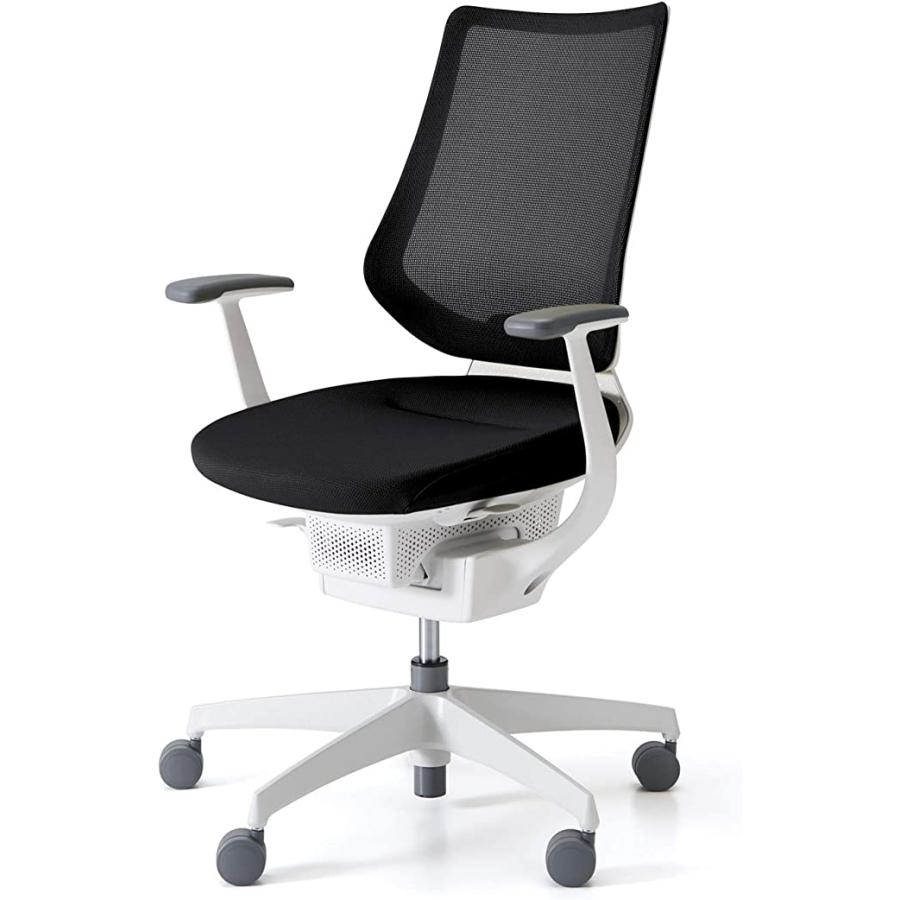 組立設置込コクヨ オフィスチェア ベゼル ファンクショナル ランバーサポート付 可動肘 フローリング用 アルミ脚 ホワイトソフトグレー 1脚直送品