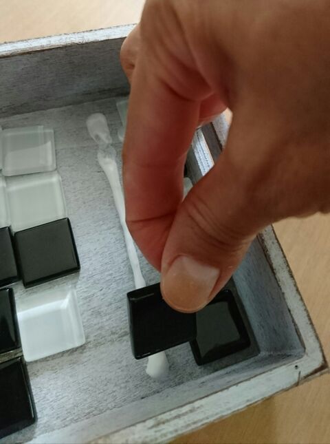 100均diy セリア ウッドティッシュケースに黒タイルを男前に
