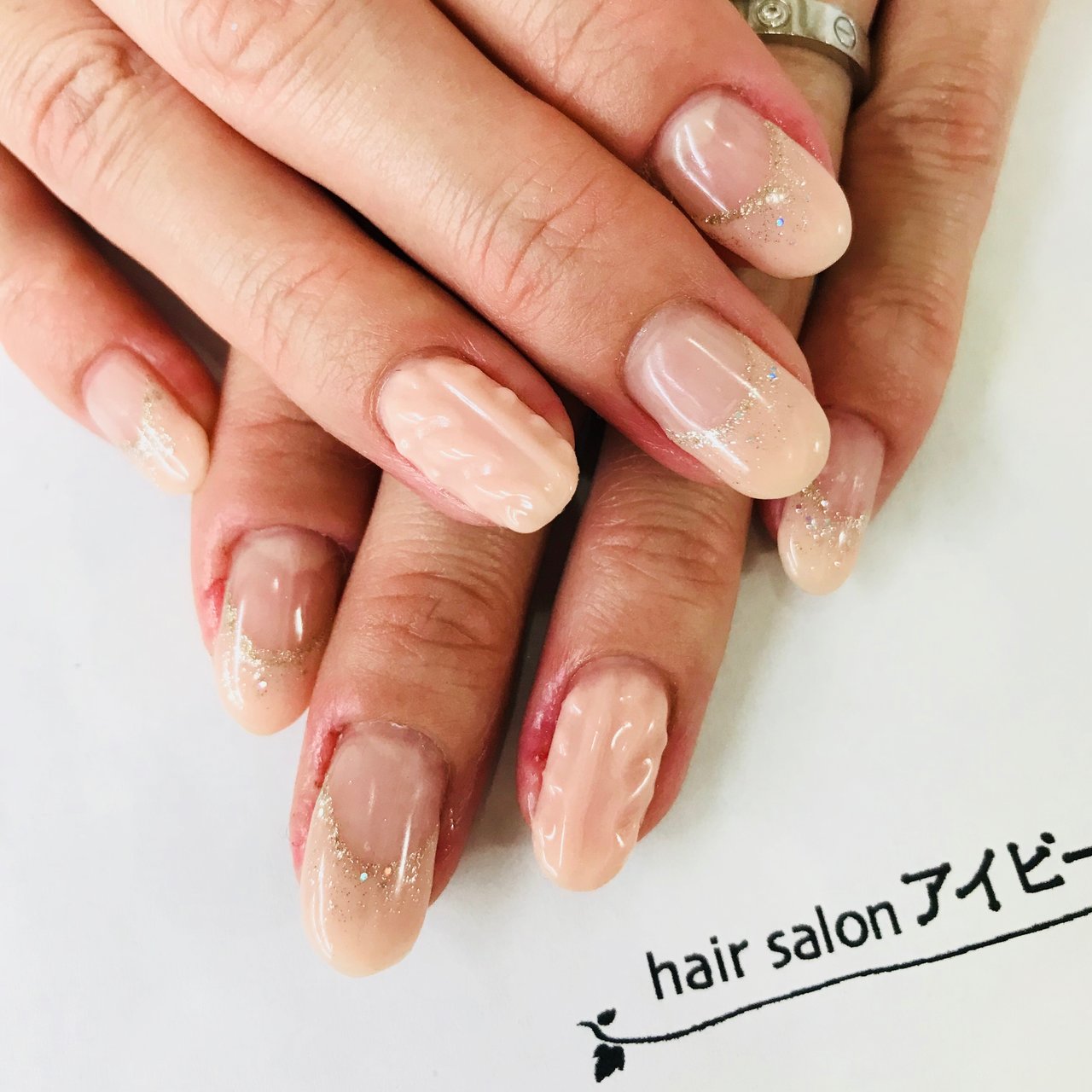 オフィスネイル ナチュラルピンク グラデーション ニットネイル
