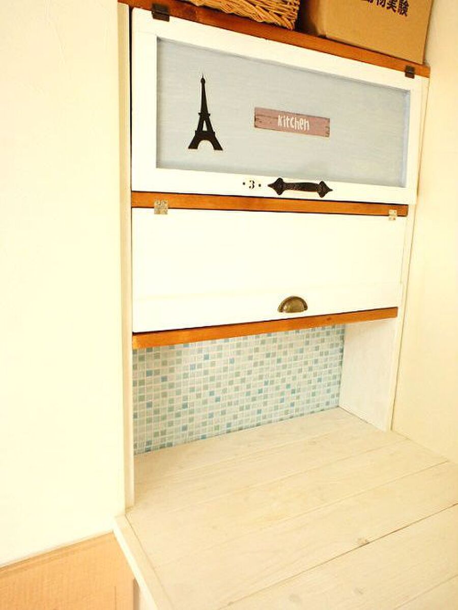 Diyダイソーのタイル柄リメイクシートを食器棚に貼ってみる