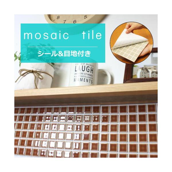 モザイクタイル シール シート販売 25角 茶色 ブラウン 艶あり