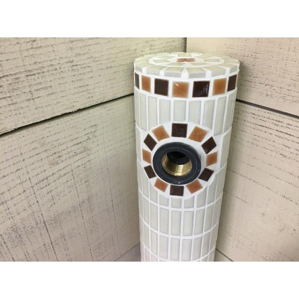 受注生産 モザイクタイルの水栓柱 立水栓 アイボリー 茶色 立水栓 C