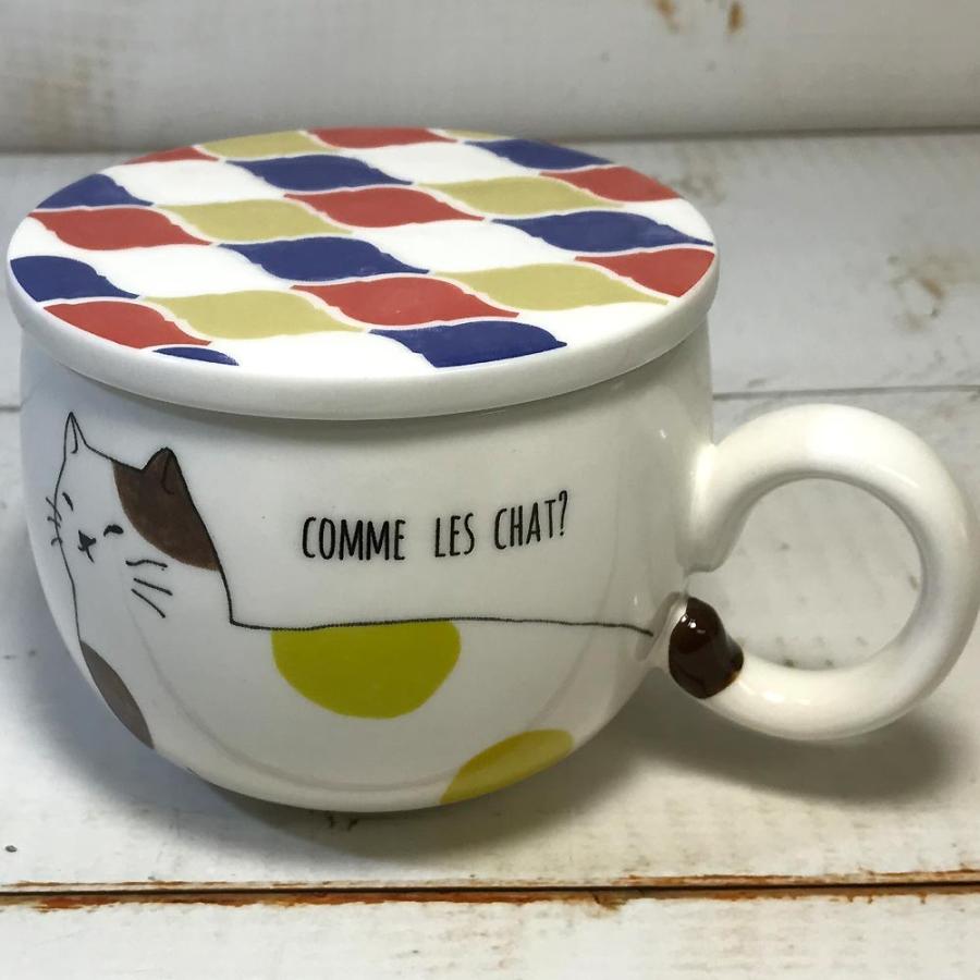 タイル風コースター付きマグ 三毛猫 マグカップ 北欧 フタ付き 猫