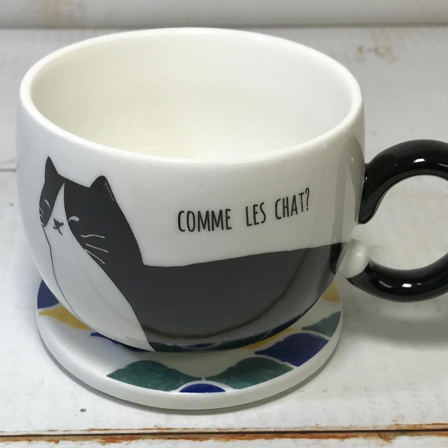 タイル風コースター付きマグ 黒猫 マグカップ 北欧 フタ付き 猫 グッズ