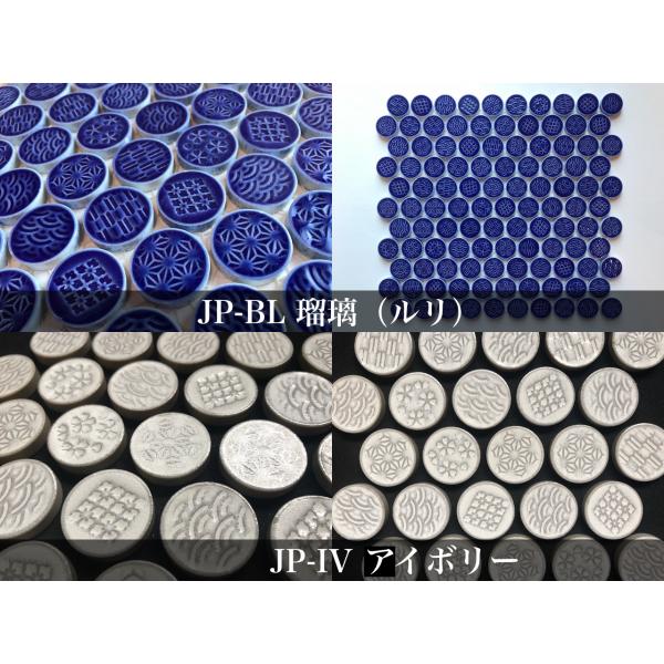 美濃焼タイル モザイクタイル 27mm丸 和柄 Jpブルー キッチン