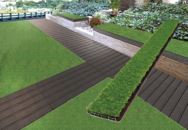 広い屋上にシバシバとウッドパネルを組み合わせた快適空間 Green