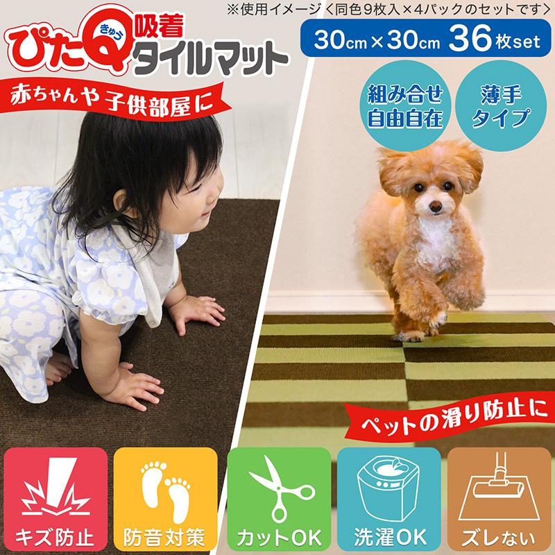 吸着 タイルマット ぴたq 30 30cm 36枚セット ブラウン ベージュ