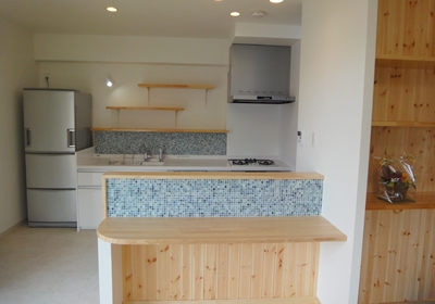 施工事例 キッチンリフォーム カウンターにアクセントとして名古屋