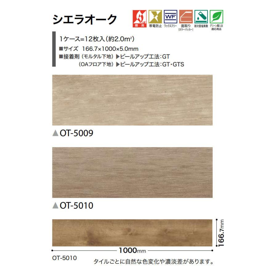 木目 置敷きタイル サンゲツ 5mm厚 フロアタイル Ot 551 553 シエラ