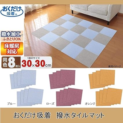 Amazon サンコー おくだけ吸着 床暖房対応 撥水タイルマット 30 30cm