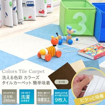 Amazon 洗える色彩カラーズタイルカーペット 簡単吸着 9枚入り