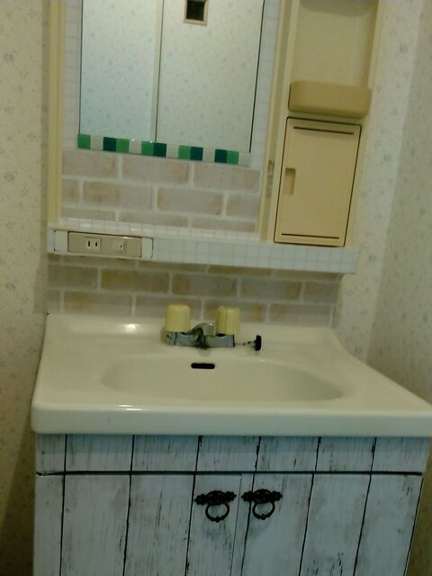 100均の材料で ボロボロの洗面台をリメイク 意外とみられる感じに