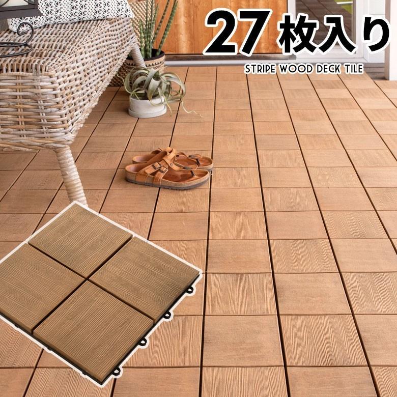 ウッドデッキタイル 人工木 ブラウン 軽量 木目柄 27枚セット ウッド