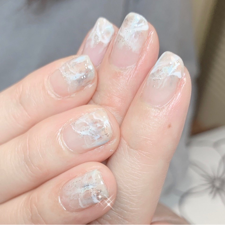 40代の夏ネイルクリア大人カラーのバイカラーネイルが