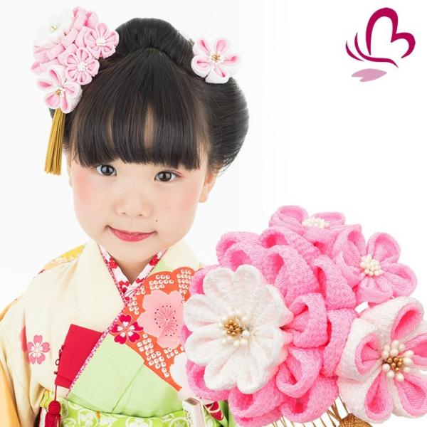 かんざし 髪飾り 七五三 3歳 7歳 三歳 七歳 ピンク つまみ細工